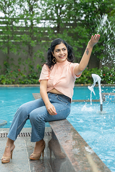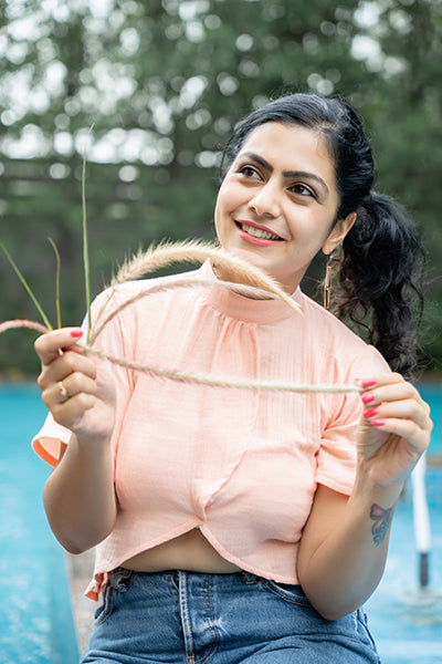 Light, airy, and effortlessly cute — the Coral Cut Top is made from soft cotton double gauze for all-day comfort. Its playful front slit and pastel coral hue make it your go-to piece for easygoing days and breezy evenings
